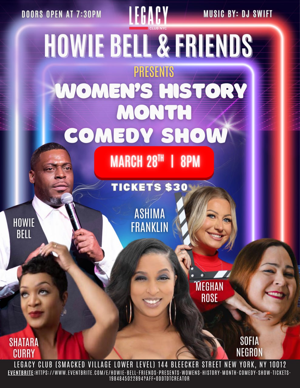Howie Bell & Friends presents Women's History Month Comedy Show at NYC' Legacy Club Featuring Funny Women only!! Comedians Meghan Rose, Sofia Negron, Shatara Curry and Ashima Franklin.